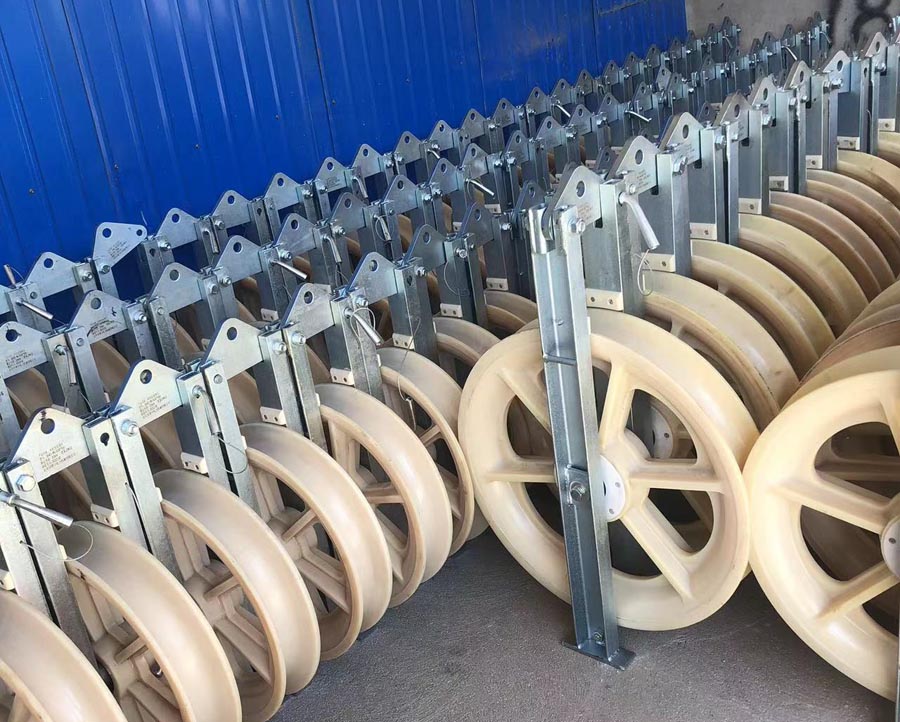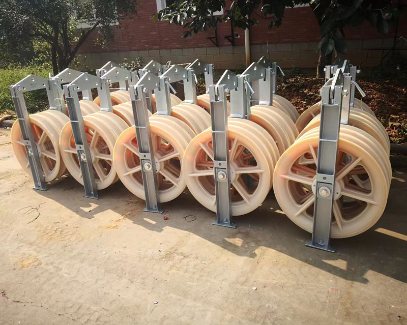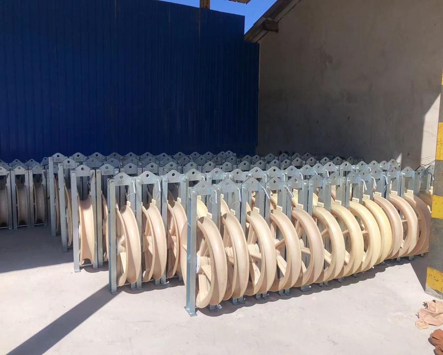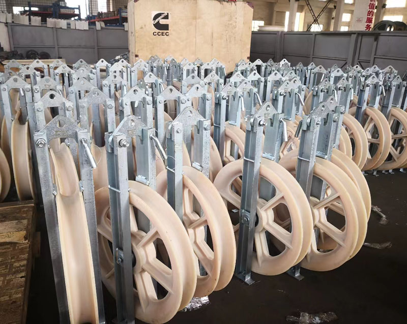 5、平行線拐角塔前后左右也不適合設(shè)定張力機,由于導(dǎo)線根據(jù)放線滑輪鋼筋錨固很不便捷。